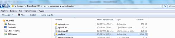 Tomar el archivo SavX.exe donde X es la versión y copiarlo a la ruta de instalación del SAV generalmente en archivos de programas