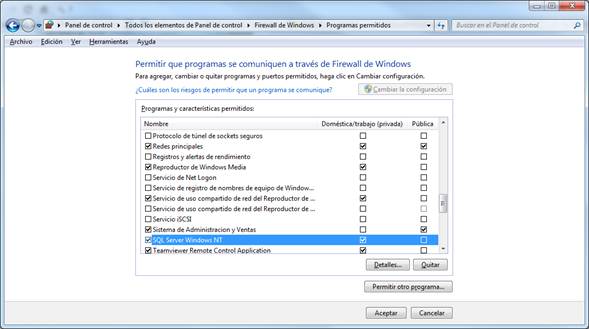 4- Crear una excepción en el FW para C:Archivos de programaMicrosoft SQL